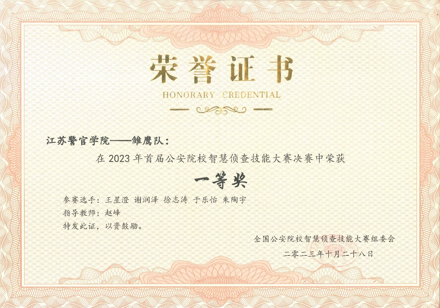本次技能大赛由10个公安院校联合举办,通过以赛促教、以赛促学、以赛促练、以赛适岗,实现公安院校优势互补、互学互鉴、共建共享。侦查系选派的由赵峰、陈伟老师指导的学生团队“雏鹰队”荣获一等奖、最佳表现奖,赵峰老师获优秀指导教师奖。