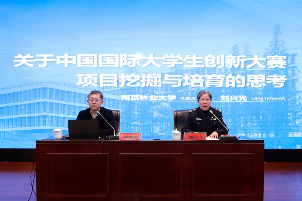刘兴光对中国国际大学生创新大赛进行了全面介绍和深入剖析,既有国家层面的政策宣介、大赛定位的规格诠释,也有申报选题的思路厘清、项目落地的规则要求,更有通过大数据分析获取的大赛全方位趋势解读,内容生动翔实,分析深刻全面。他表示创新大赛是一个高起点、高级别、高定位、师生高度参与的赛事,存在夺金难、晋级难、获奖率低等特点,需要较长时间的孵化培育。他以南京林业大学参加创新大赛金奖项目为例,结合专业特点进行了细致分析,强调在项目的创新上要注重选材“基因”,充分发挥高层次人才和青年教师的优势特长。