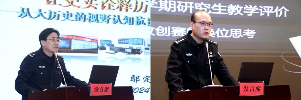 在观摩活动中,学院二级巡视员、公安管理系主任鄢定友、侦查系主任张健一分别开设了《让史实诠释历史的“为什么”:从大历史的视野认知抗日战争取胜原因、意义与经验》《课堂教学改革的一些想法:以〈刑法学〉为例》观摩课。