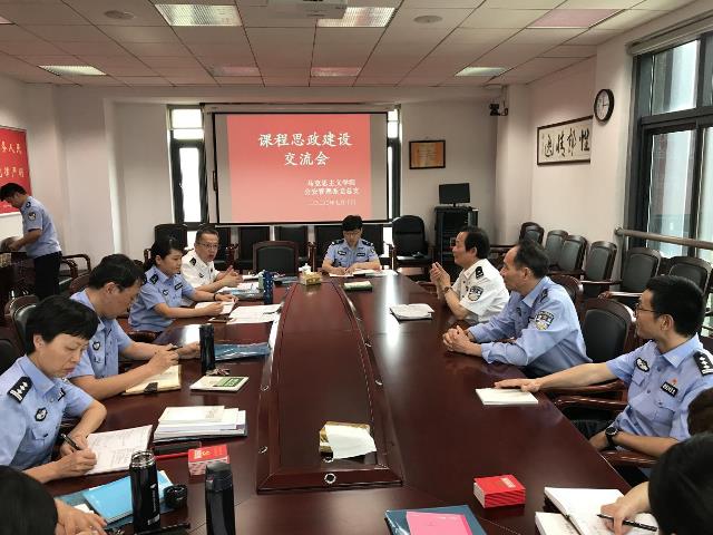 2020年7月10日,为充分发挥思政课教师在课程思政方面的示范作用,马克思主义学院王光森院长和施展旦、钮松元两位老师到公安管理系进行课程思政建设交流指导。
