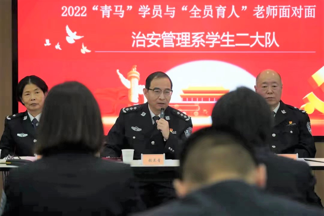 活动中,张兰青院长充分肯定了治安管理系学生二大队在育人工作上取得的成绩,并就学员们关心的问题进行了耐心的阐释和教育引导。张兰青指出,“青年兴则国家兴,青年强则国家强。青年一代有理想、有本领、有担当,国家就有前途,民族就有希望。”警院学子一定要始终牢记习近平总书记的谆谆教导,坚定理想信念、练就过硬本领、矢志艰苦奋斗、锤炼高尚品格,勇敢肩负起时代和人民赋予的重任。明志尚需笃行, “冀以尘雾之微补益山海,荧烛末光增辉日月”,希望警院学子服从命令、听从指挥,明确职责、坚守岗位,虚心学习、提升技能,严守纪律、履职尽职,吃苦耐劳、无私奉献。