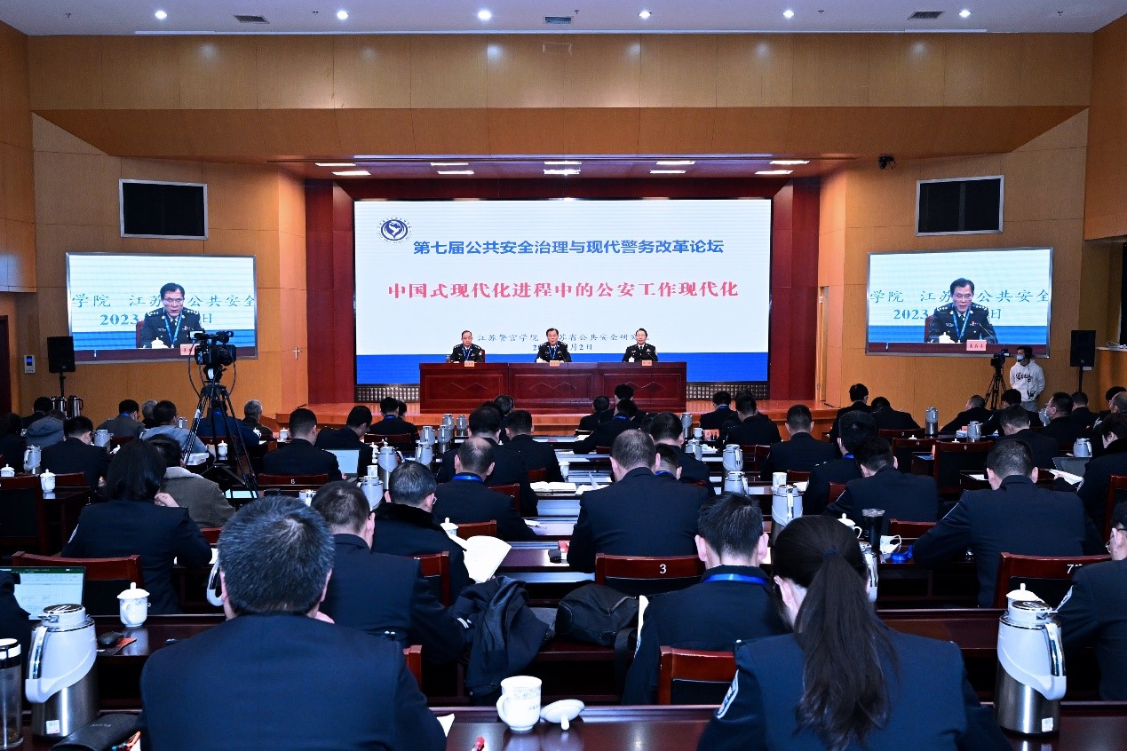 3月2日,江苏警官学院、江苏省公共安全研究院举办第七届公共安全治理与现代警务改革论坛。来自省委办公厅、省公安厅、省社科规划办等有关部门,南京大学、江苏大学等高校和研究机构,中国人民公安大学等公安警察院校,南京市公安局等省内外公安机关的有关领导和专家,通过线上线下相结合方式参加会议。论坛围绕“中国式现代化进程中的公安工作现代化”主题,聚焦公共安全治理体系建设、构建公安机关实战化职能体系等问题深入研讨,为推进公安工作现代化、提升公共安全治理水平、更好维护新时代国家安全和社会稳定建言献策。