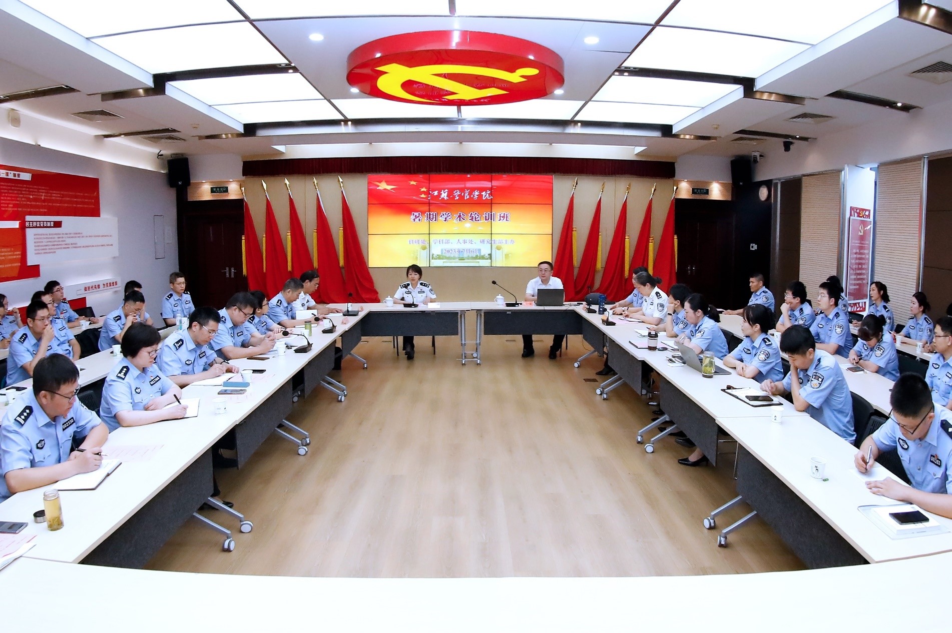 为认真学习贯彻习近平总书记关于科技创新的重要论述精神,贯彻落实公安部、省公安厅“科技兴警”战略部署,开展好有组织科研工作, 7月6日至7日,学院举办了2023年暑期学术轮训会,学院党委副书记、院长黄进出席并讲话。轮训会要求干部教师把握机会、虚心请教、问诊求策、明确方向,把专家学者们的真知灼见与学科建设相结合,运用到科研工作中去,积极开展科学研究与高层次项目申报,努力产出高质量的科研成果,推进学院高质量发展,为公安工作现代化建设作出新贡献。