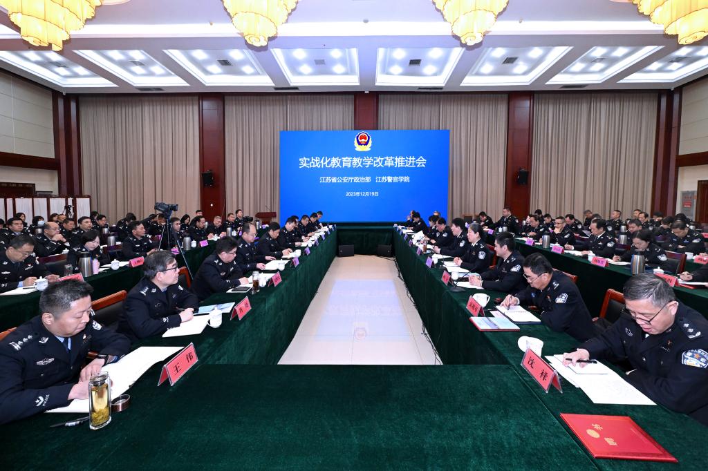 陈安指出,全省13个设区市公安局政治部主任、教育训练部门负责同志、警校校长以及厅机关14个警种部门主要负责人,齐聚江苏警官学院共商校局合作,共议更高水平推进实战化教育教学改革,在我省公安高等教育历史上还是第一次,充分体现了省公安厅党委对公安教育工作、对警院建设发展的关心重视。强调要充分认识实战化教育教学改革对全省公安工作现代化、公安队伍建设和公安高等教育的重要意义,毫不动摇坚持全警聚力协同育人,不断激发全省公安机关和学院实战化教育教学改革的内生动力,奋力推进江苏公安教育现代化走在前、做示范,为江苏公安工作现代化提供支持和保障。