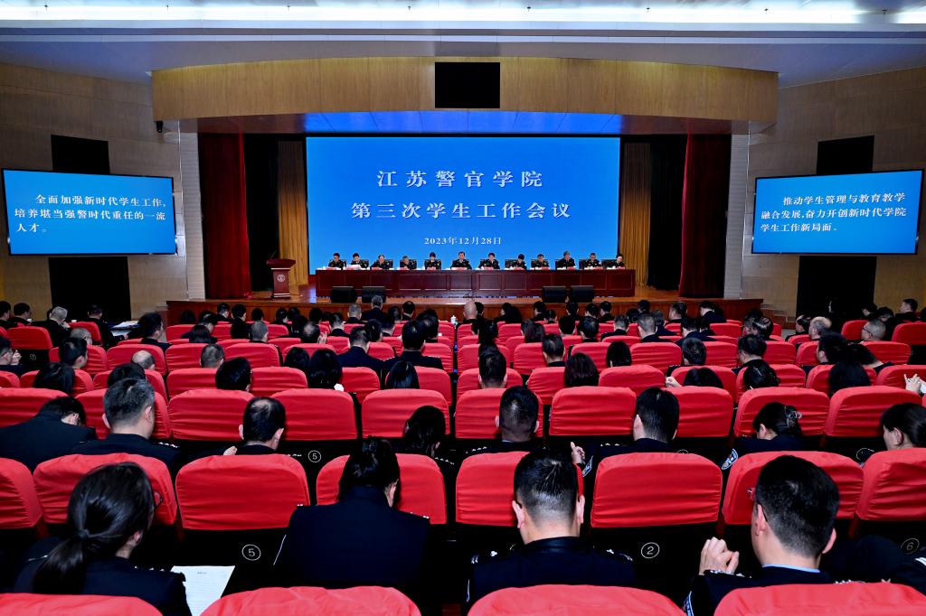 为深入贯彻中央、省委和省公安厅、省教育厅部署要求,深化落实立德树人、育警铸剑根本任务,聚力推动学生工作高质量发展,着力培养堪当强警时代重任的一流人才,12月28日,学院召开第三次学生工作会议。省公安厅党委委员、学院党委书记夏存喜,省公安厅副厅长、厅党委委员、政治部主任陈安,学院党委副书记、院长黄进出席会议并讲话。学院党委委员、副院长张敏主持会议。省公安厅政治部政工综合处、实训办负责同志到会指导。