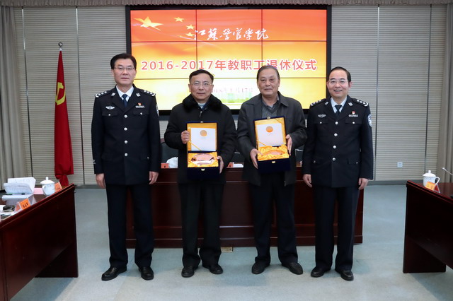 1月17日下午,学院举行2016-2017年教职工退休仪式,省公安厅党委委员、学院党委书记夏存喜出席仪式并讲话,学院党委副书记、院长张兰青出席仪式,学院党委副书记张霞主持仪式,2016-2017年部分退休教职工和相关部门负责人参加了仪式。