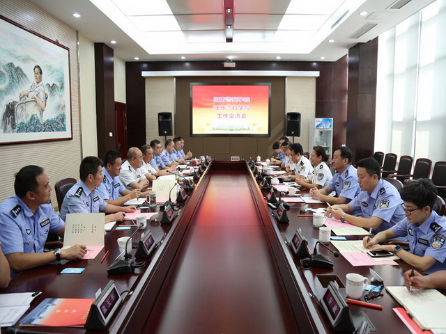 9月21日,河南警察学院党委委员、副院长徐晓慧率团来我院考察交流。巡视员张健接待了河南警察学院考察团并与来宾进行了座谈。双方围绕公安机关面向公安院校公安专业毕业生考试录及毕业生综合积分排名办法、学生警务化管理、外出警务机制大型安保学警增援机制、校园文化特色、实战训练及社会实践等方面进行了探讨交流。