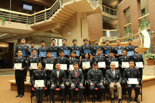 培训期间,我院师生受到了加方的高度重视和热情接待。开班仪式上,哥伦比亚省司法学院国际部主任Ken Davies出席并讲话,热烈欢迎培训交流团的到来,提出了要求和美好祝愿。根据培训计划,参训师生学习了国际执法合作、警务执法沟通、危机干预、武力使用、刑事案件侦查、反恐怖犯罪、管理与领导力等课程,参观了加拿大百年历史的近代居民社区,观看了温哥华警察局贵宾接待摩托车队驾驶表演,了解了加拿大警务运作机制和先进理念,受益良多。培训课堂上,参训学生认真听讲,并围绕当前警务工作的热点、难点问题,积极提问,踊跃发言;课间,大家主动与教官和工作人员进行交流,既学习了警务专业知识,又锻炼了英语口语表达能力。整个培训过程中,全体参训师生严格要求,规范管理,注重与同期培训兄弟院校师生的交流,注意维护江苏警官学院师生的良好形象,表现出良好的组织观念、纪律作风和求学精神,受到了加方学院领导、授课教官、工作人员和兄弟公安院校师生的一致好评。