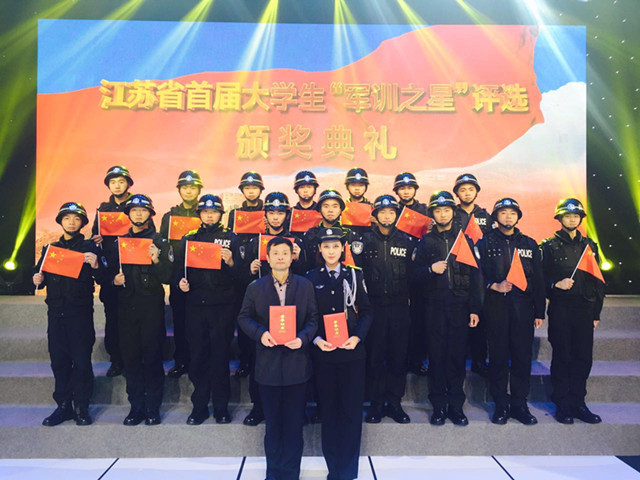 9月初接到比赛通知后,院领导高度重视,警察体育教研部、学生处、团委等部门通力合作,积极开展学生选拔、训练和参赛工作。在江苏省“军训之星”电视决赛现场,薛羽佳同学发挥出色,获得了现场演讲和军事技能展示第五名的好成绩,后经过网络投票,薛羽佳同学获评江苏省首届大学生“军训之星”。在颁奖典礼现场,我院2016级侦查学专业的16名学生获选在颁奖典礼上展示军训科目《盾牌操》,充分展示了我院学生军训成果和风采。(警察体育教研部 刘古华)