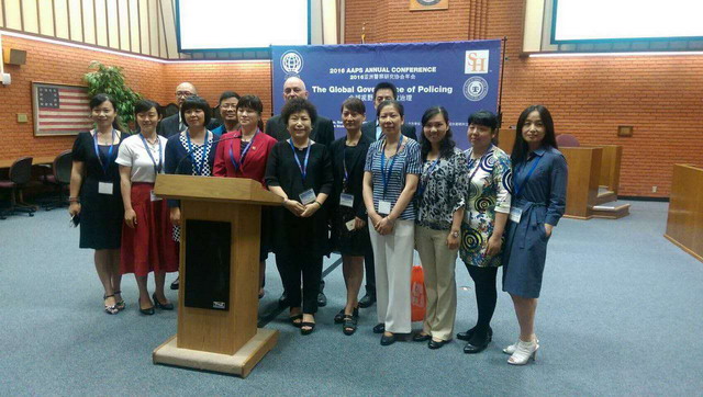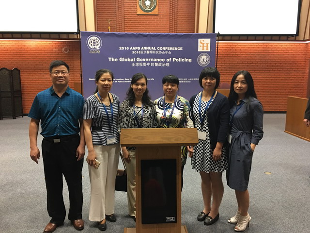 为进一步了解国际警务发展现状,推进学院品牌专业建设和省哲学社会科学重点研究基地建设,不断扩大我院在亚洲警察院校中的学术影响力,经多方协调、积极争取,我院刘蔚文、邢盘洲、郏红雯、钱洁、薛向君、徐爱华等6位教师于7月6日至11日顺利赴美国山姆·休斯敦大学参加了2016年亚洲警察研究协会年会。本次年会研讨主题为“全球警政治理:警察、社会与市场”,设有“社区警务”、“国际警务合作”、“犯罪与犯罪学”等6个分会场,来自中国、美国、日本、泰国等国家以及中国台湾地区的专家学者参加了会议。我院参会教师就不同的议题分别用英文作了5个主题发言。