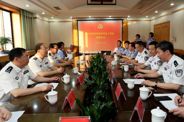 6月16日下午,江苏警官学院研究生工作站在南京市公安局鼓楼分局正式挂牌。江苏警官学院院长尚建荣、南京市公安局常务副局长李明杰为研究生工作站揭牌,江苏警官学院副院长宋践、南京市公安局鼓楼分局局长车道正分别代表学院和鼓楼分局共同签署了合作共建协议并致辞,江苏警官学院副院长薛宏伟宣读了《关于聘任车道正等32名实务部门专家担任我院研究生实战导师和实战教官的通知》,宋践副院长和薛宏伟副院长还分别为研究生实战导师和实战教官颁发聘书。仪式由南京市公安局鼓楼分局政委薛宏森主持,鼓楼分局及学院研究生部相关同志参加仪式。