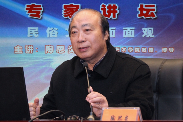 11月27日下午,应学院邀请,我国著名民俗学者、中国民间文艺家协会副主席、东南大学陶思炎教授做客我院校园文化月“名家讲坛”,作“民俗文化遗产的释读”讲座。张健副院长主持了讲座。学院师生聆听了陶思炎教授精彩的演讲。