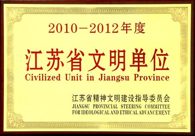 日前,江苏省精神文明建设指导委员会召开表彰大会,表彰全省在文明单位创建工作中取得优异成绩的先进单位,我院荣膺“2010-2012年度江苏省文明单位”称号。