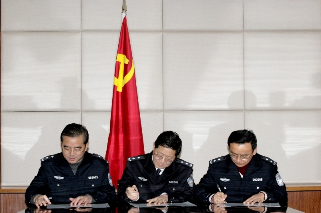 2007年12月21日上午,在学院综合楼十楼小会议室举行了“责任状签订仪式”。党委书记曾剑明、院长吴跃章分别与学院副职领导签订了“江苏警官学院纪律作风建设领导责任状”。此次责任状签订工作,是学院2007年纪律作风教育整顿活动的一项内容。院党委成员还将与各分管的中层部门党政负责人签定;各中层部门党政负责人要与本部门所有人员层层签定责任状。
