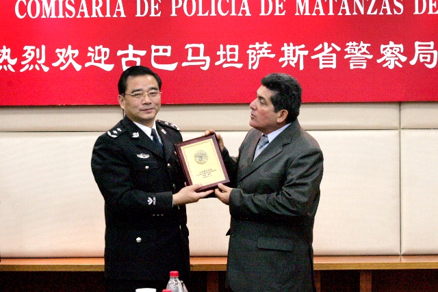 在我院院长吴跃章、党委副书记赵远等的陪同下,古巴马坦萨斯省警察局代表团饶有兴趣地参观了我院本部图书馆、实验中心、警体馆、射击场、计算机房、学生公寓和“三长”学校。在工作交流中,吴跃章院长首先向来访的客人全面介绍了我院的概况和全日制教育,在职干警培训等方面的情况。古巴马坦萨斯省内务厅长阿吉利欧·加尔维斯·帕尔上校介绍了该省及教育培训方面的有关情况。双方就警察培训工作的开展和加强在警察教育培训方面的交流进行了探讨。