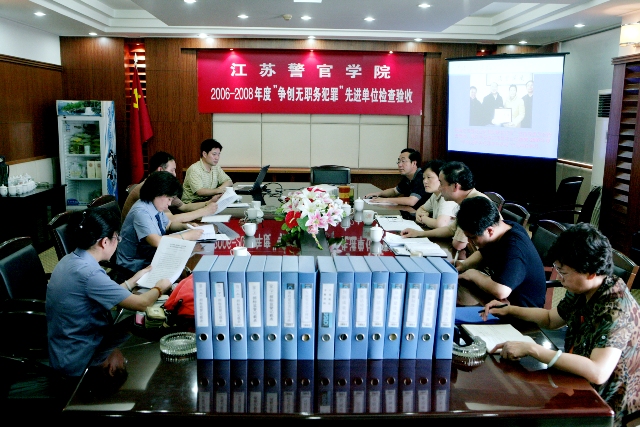 7月14日下午,我院争创“南京市2006-2008年度无职务犯罪单位活动先进单位”工作接受雨花台区预防职务犯罪工作指导委员会检查组的阶段检查验收。院党委委员、纪委书记张霞参加了会议。