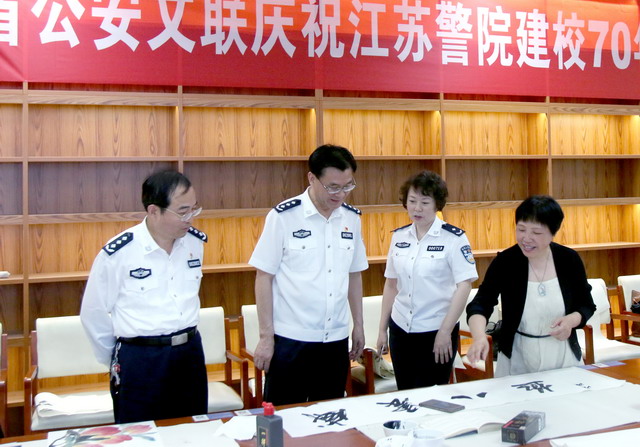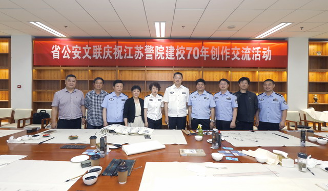 5月23日,省公安文联副主席、秘书长许丽晴等一行8人应邀来学院,开展书画创作交流活动,庆祝学院建校70年复校40周年。省公安厅党委委员、学院党委书记夏存喜,学院党委副书记、院长张兰青到创作现场看望了书画家一行。