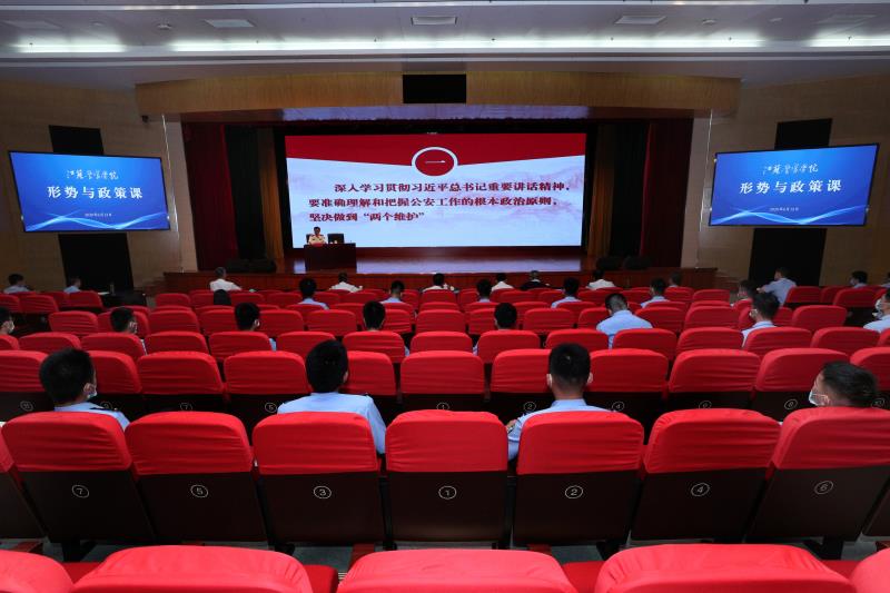 6月12日下午,省公安厅党委委员、学院党委书记夏存喜给公安管理系学生讲“形势与政策”课,勉励全体学生不忘从警初心、筑牢忠诚警魂,勇担时代重任、练就过硬本领,努力把自己锻造成为“四个铁一般”高素质预备警察。