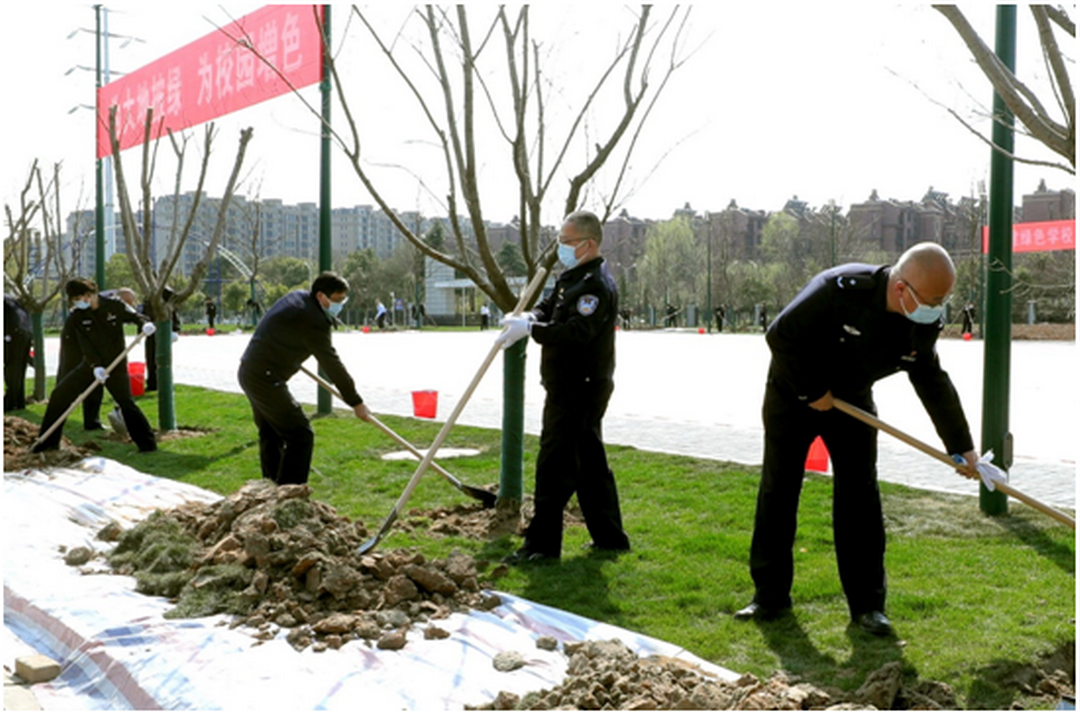 草长莺飞三月天,正是植树好时节 。在2022年植树节来临之际,3月11日,我院开展以“创建绿色学校 推进生态文明”为主题的植树节活动,在学院西门排球场边种下一片樱花树。省公安厅党委委员、学院党委书记夏存喜,学院党委副书记、院长张兰青率全体院领导和各部门负责人参加了植树活动。