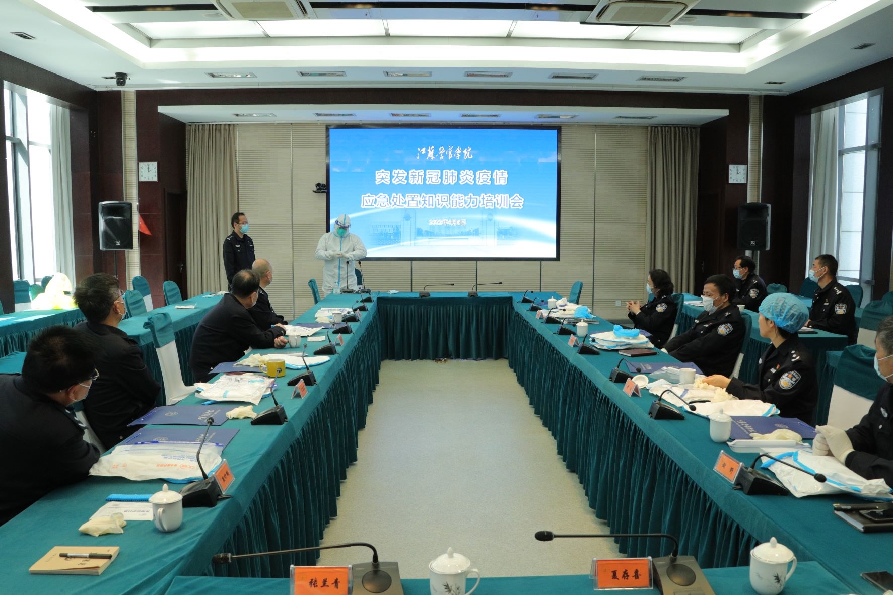 为认真贯彻落实上级疫情防控决策部署,提高学院突发疫情应急处置工作能力,4月6日,学院组织开展了突发疫情应急处置分组演练。省公安厅党委委员、学院党委书记夏存喜,学院党委副书记、院长张兰青到演练现场检查指导,其他院领导分别到各工作小组协调指导演练工作。