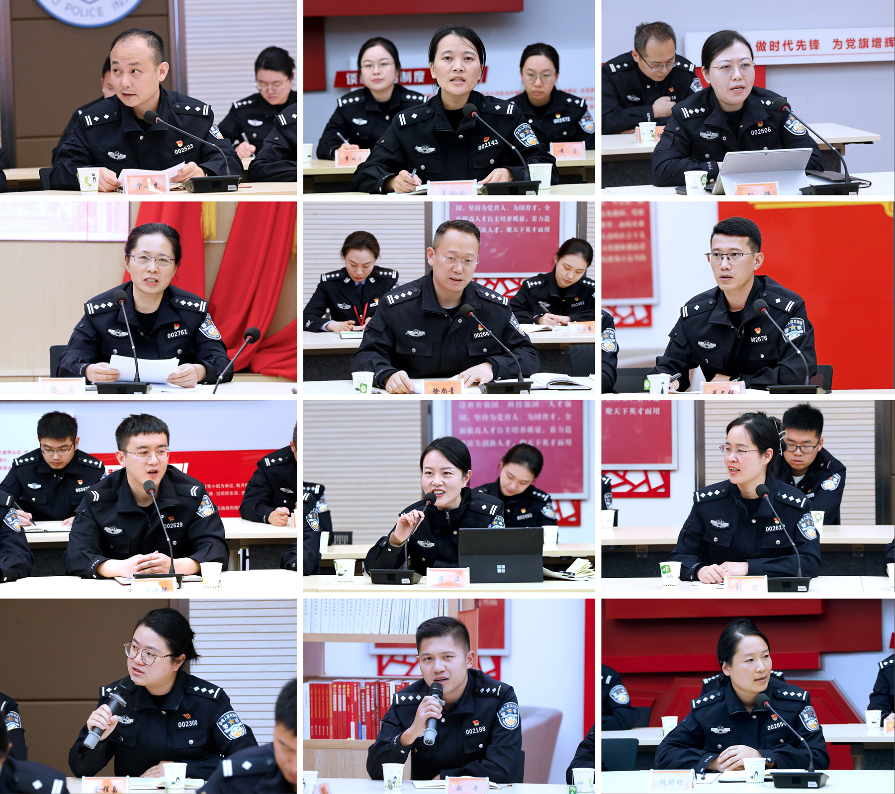 活动伊始,6 名青年党员干部教师代表结合岗位工作实际,聚焦奋力推进江苏公安教育现代走在前列目标,分别从聚焦实战实现教学科研与实战融合互补、教学科研创新能力提升、教师教官队伍和专业人才矩阵打造、青年教师培养、学警警务化管理、教学科研岗与行政教辅岗的特点与选择等方面进行了交流发言。6 名干部教师代表发言结束后,其他青年党员干部教师围绕高质量科研课题申报经验、传统文化育警铸魂、后勤保障提质增效等内容踊跃发言、积极讨论,现场气氛热烈。