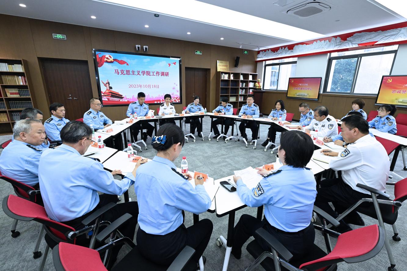 马院负责人从持续推进马院建设和思政课改革创新、积极推进学科建设和科研工作、争创省级示范马院等方面介绍了马院发展情况和工作成效,与会教师围绕加强党的建设、干部队伍建设和教研室建设提出建议。陈卫与大家交流了认识体会,指出马院不仅是江苏警院的马院,更要努力打造成全省公安系统的马院。她强调,要认真落实学院第四次党代会报告中全面加强马克思主义学院建设要求,以更高格局、更广胸怀推动马院教师队伍提能、学科发展提质、课程建设提优;要聚焦特色项目打造,持续推进思政课改革创新,完善思政课教育教学体系;要创作宣传思想文化精品,用好学院新媒体宣传平台,把忠诚微课、忠诚警魂教育成果等展示好、宣传好;要服务人才培养,充分发挥党建引领作用,引导学生坚定理想信念,矢志不渝做党和人民的忠诚卫士。
