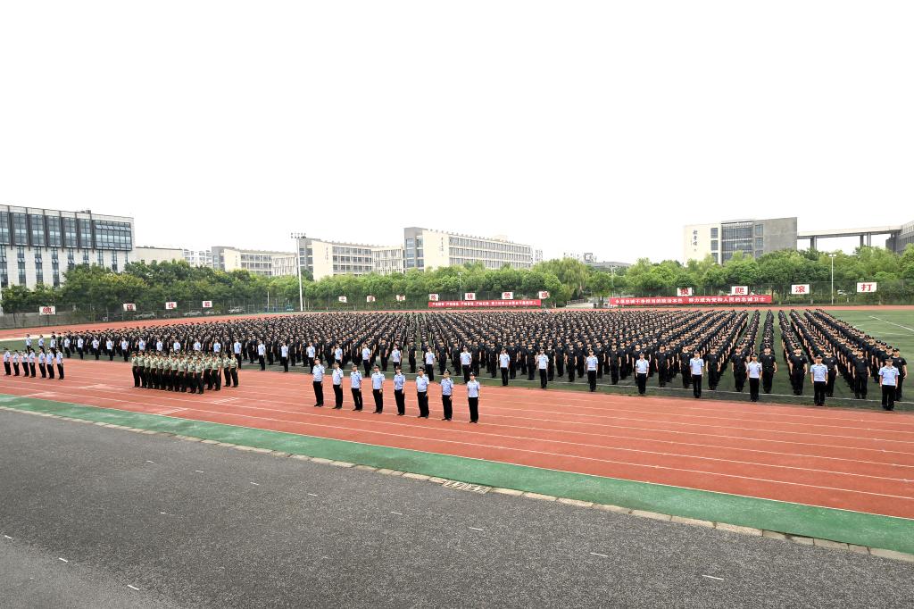 8月30日上午,学院在浦口校区田径场举行2023级公安专业新生军训开训动员大会。学院一级巡视员殷竹钧为新生军训大队授旗并讲话。