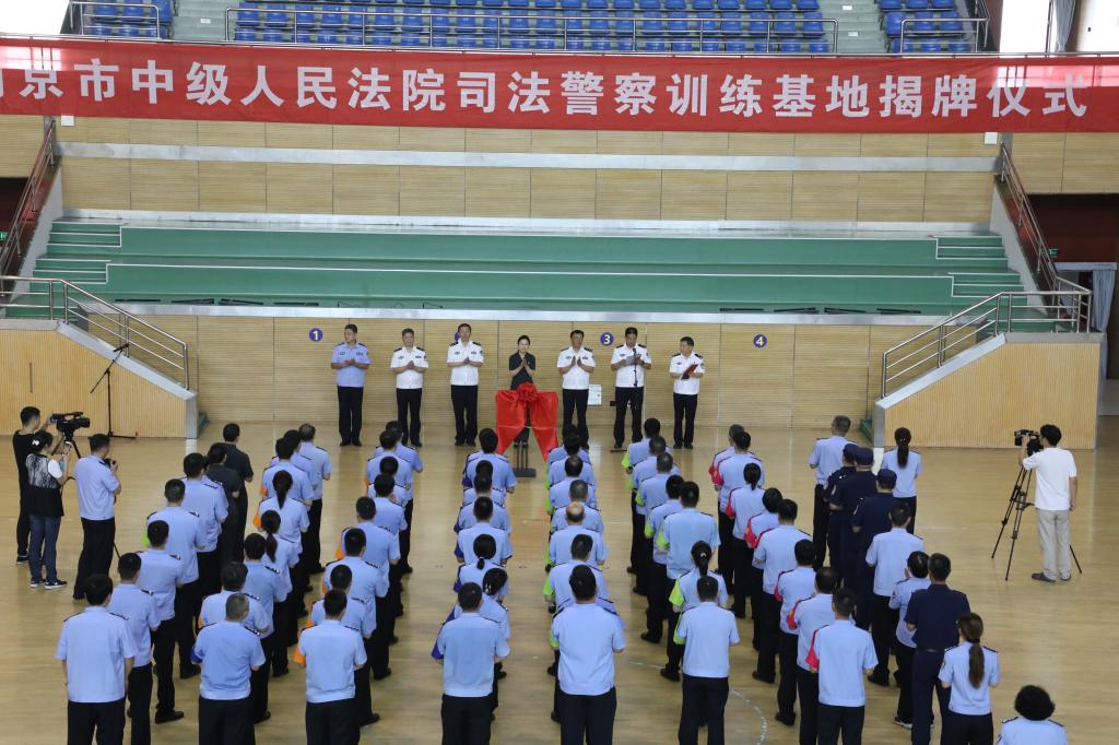 7月7日上午,南京市中级人民法院司法警察训练基地揭牌仪式在学院举行。学院党委委员、副院长韩德明出席揭牌仪式并致辞,南京市中级人民法院党组副书记、副院长李爱君出席仪式并讲话,学院党委委员、二级巡视员、警体部主任吴辉阳出席仪式。
