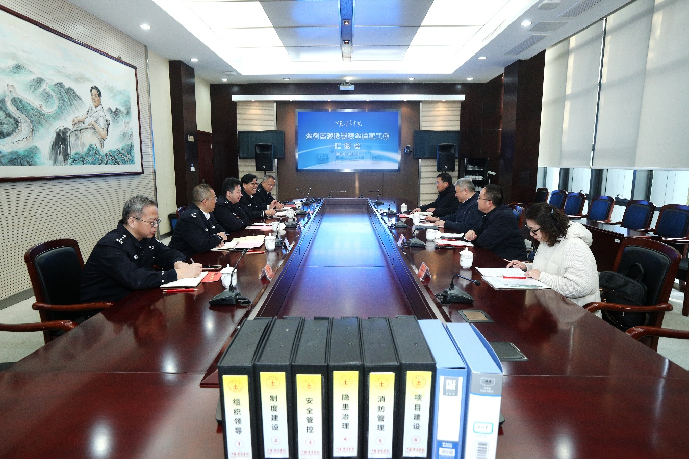 学院刑技系、警体部、教务处、学生处、图书馆、博物馆、后勤处、安保处等部门相关人员参加检查。