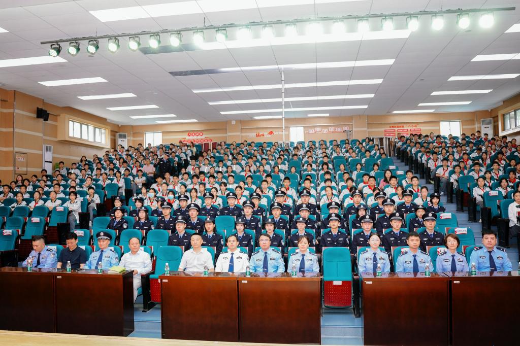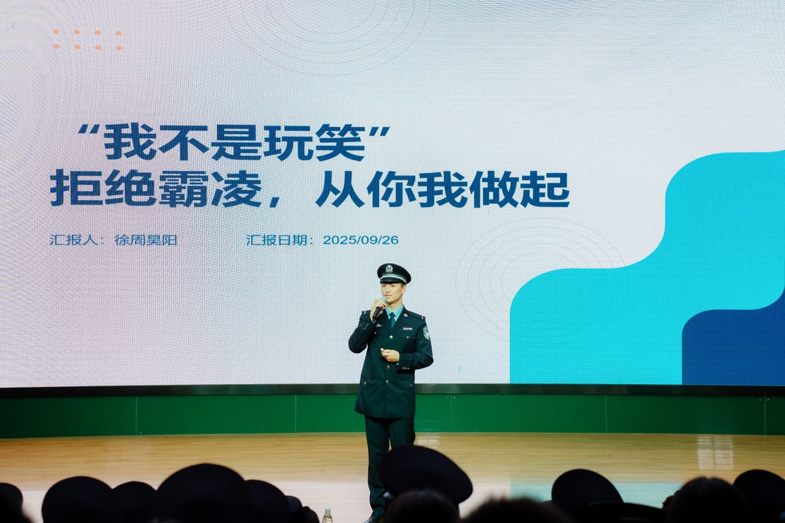 2025年9月26日,为迎接新中国成立76周年,深入贯彻落实江苏省公安厅“苏警安新”未成年人安全守护工程,“阳光下的蓝丝带”江苏警官学院宣讲团走进南京师范大学附属中学新城初级中学,为初二年级900余名同学开展“青春迎国庆 法治护成长”主题宣讲。本次活动旨在通过专业知识宣讲与大中学生互动,以“警察蓝”守护成长,用“法治伞”护航未来,让青少年在国庆氛围中感悟家国担当,在法治教育中筑牢安全防线,切实增强法治意识、安全意识和爱国情怀。