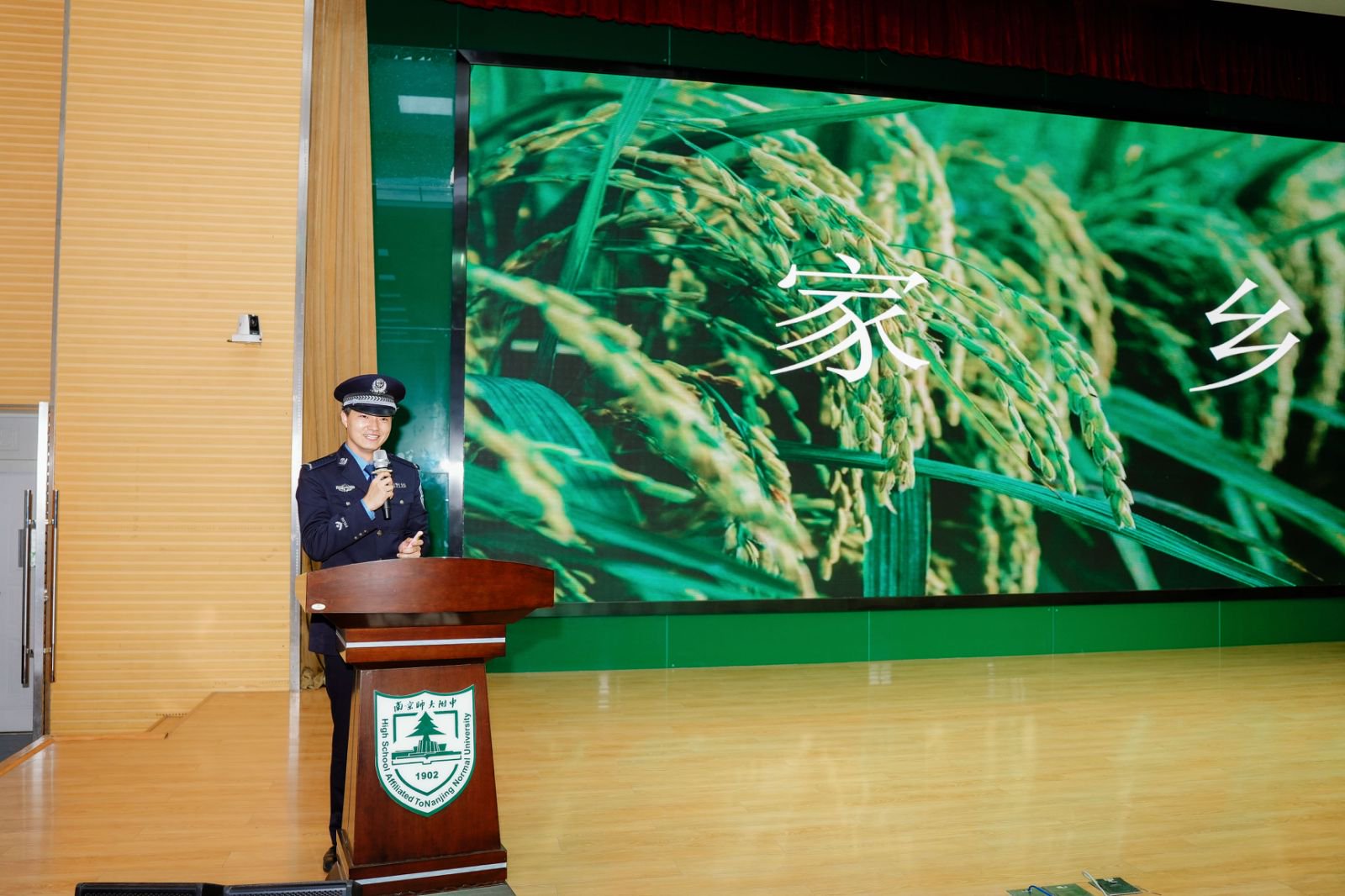 校长致辞后,周加军警官给同学们带来了一场生动的法治宣讲,他用同学们熟悉的案例,告诉同学们要守好法律的底线,做遵纪守法的新时代好青年。周教官精彩的讲解赢得了大家热烈的掌声。
