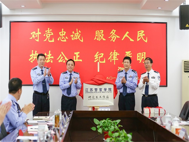 为加强研究生教学与公安实战相结合,10月16日,研究生教育部组织2018级法律硕士(警务方向)研究生,赴淮安市公安局经济技术开发区分局进行研究生工作站揭牌仪式暨现场教学活动。省公安厅政治部实训办副主任韩秉建,淮安市局党委委员、政治部主任乐翔,淮安市公安局经济技术开发区分局党委书记、局长徐广波等参加活动并共同为江苏警官学院淮安市公安局经济技术开发区分局研究生工作站揭牌。吴杏华与徐广波签订了研究生工作站共建协议,并进行了赠书活动。韩秉建表示,建立研究生工作站利于切实提升公安实战水平、丰富研究生教育内涵、推动公安创新工作发展。乐翔表示,研究生工作站的建立体现了教学与实战相结合,希望强化校局合作,互利共赢,抓住重点环节,落实保障,立足实战需求,优势互补。徐广波表示,淮安市公安局经济技术开发区分局将紧扣深化改革要求,搭建资源共享平台,扎实推进研究生工作站的建设。