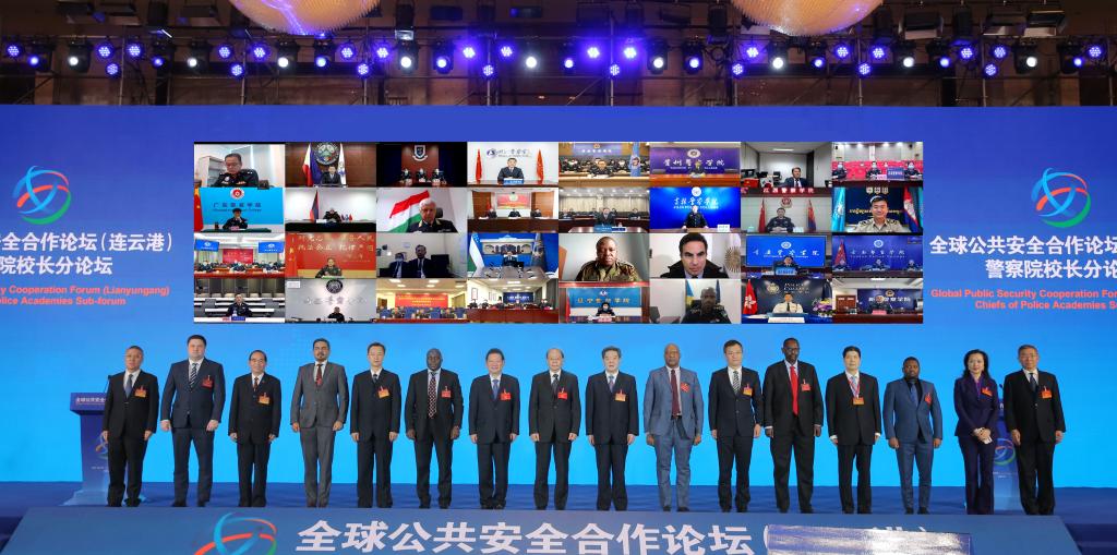全球公共安全合作论坛(连云港)·警察院校长分论坛由中国人民公安大学承办,围绕“强化警察院校合作,提升安全治理能力”主题,邀请了25所境内警察院校、19所境外警察院校及外国驻华使领馆代表,100余位警察院校负责人和专家学者进行深入研讨交流。全球公共安全合作论坛首届大会主席、国家禁毒委员会副主任曾伟雄应邀出席,第十三届全国政协委员、社会和法制委员会副主任,中国友谊促进会理事长陈智敏,公安部国际合作局副局长牛海峰应邀出席并致辞,中国人民公安大学等8所国内外警察院校长作交流发言。