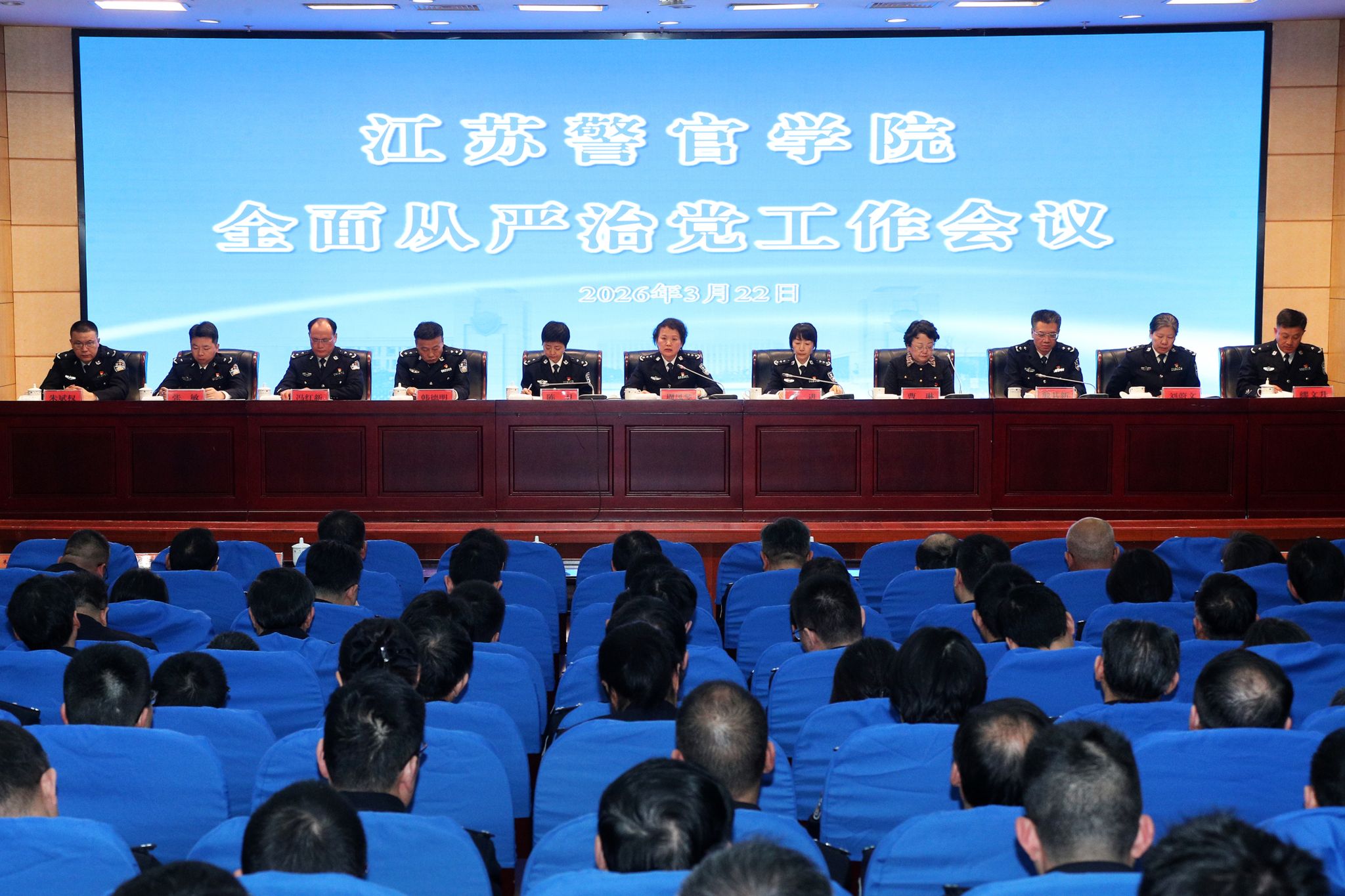 3月22日下午,学院召开全面从严治党工作会议,深入学习贯彻习近平新时代中国特色社会主义思想,认真贯彻落实党的二十大和二十届历次全会精神,全面贯彻中央纪委五次全会、省纪委六次全会以及省公安厅、省教育厅相关会议精神,研究部署2026年度学院全面从严治党工作。省公安厅党委委员、学院党委书记周凤琴出席会议并讲话,学院党委副书记、院长黄进主持会议,学院党委副书记陈卫传达学习有关会议精神,学院党委委员、纪委书记、省监委派驻监察专员殷其新作纪检监察工作报告,派驻省公安厅纪检组二级巡视员、副组长曹琳作《以纪立身、以法立德》廉政辅导报告。