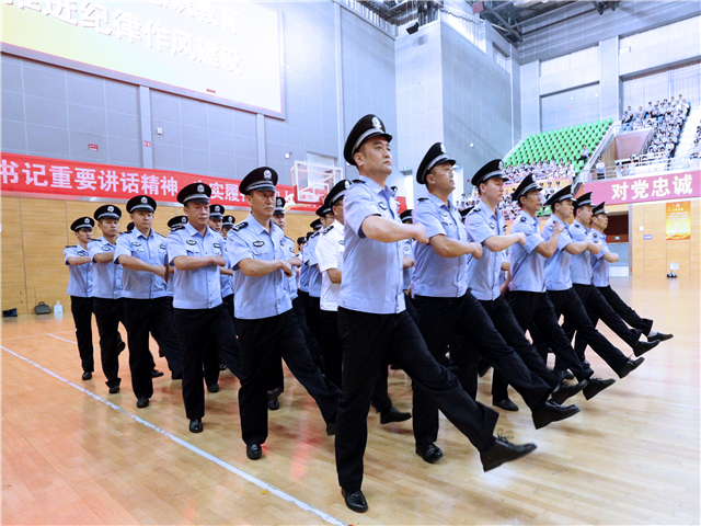 全院干部教师共编成10个区队,院领导分别编入相应区队开展训练。集训内容主要包括警察法规、警察礼仪和队列动作等。21日下午,学院举行警务化集训队列会操暨总结会议。