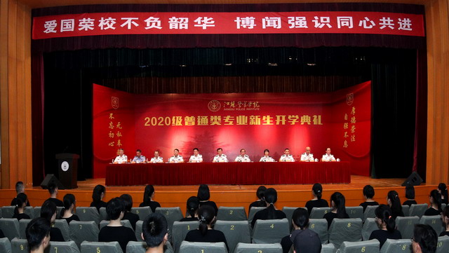 学院教务处、学生处、公安管理系、计算机信息与网络安全系、安德门校区管委会(法律系)等部门主要负责人,安德门校区(法律系)干部教师以及2020级普通类全体新生参加了开学典礼。