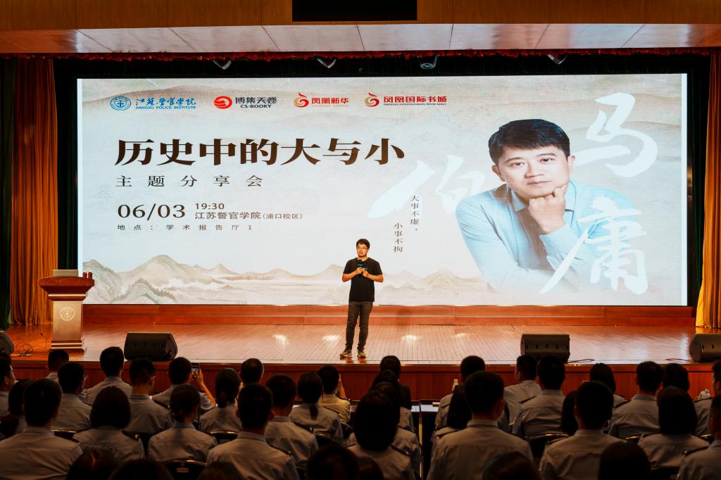 2024年6月3日晚,著名作家马伯庸莅临江苏警官学院学术报告厅一,就《历史的大与小》主题,与我院读者共同分享其文学创作的体会,讲座吸引了系部师生的积极参与,现场气氛热烈。学院党委副书记陈卫主持讲座,图书馆、组宣处等部门负责人及师生650余人现场聆听了讲座。