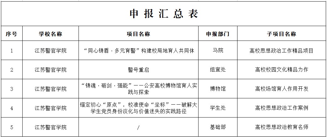 根据《省教育厅办公室关于做好教育部2026年度高校思想政治工作质量提升综合改革与精品建设项目和第四批省级项目申报工作的通知》,经校内外专家联合评审,并报校领导同意,拟推荐申报高校思想政治工作精品项目《“同心铸盾·多元育警”构建校局地育人共同体》等5个项目,现予以公示。