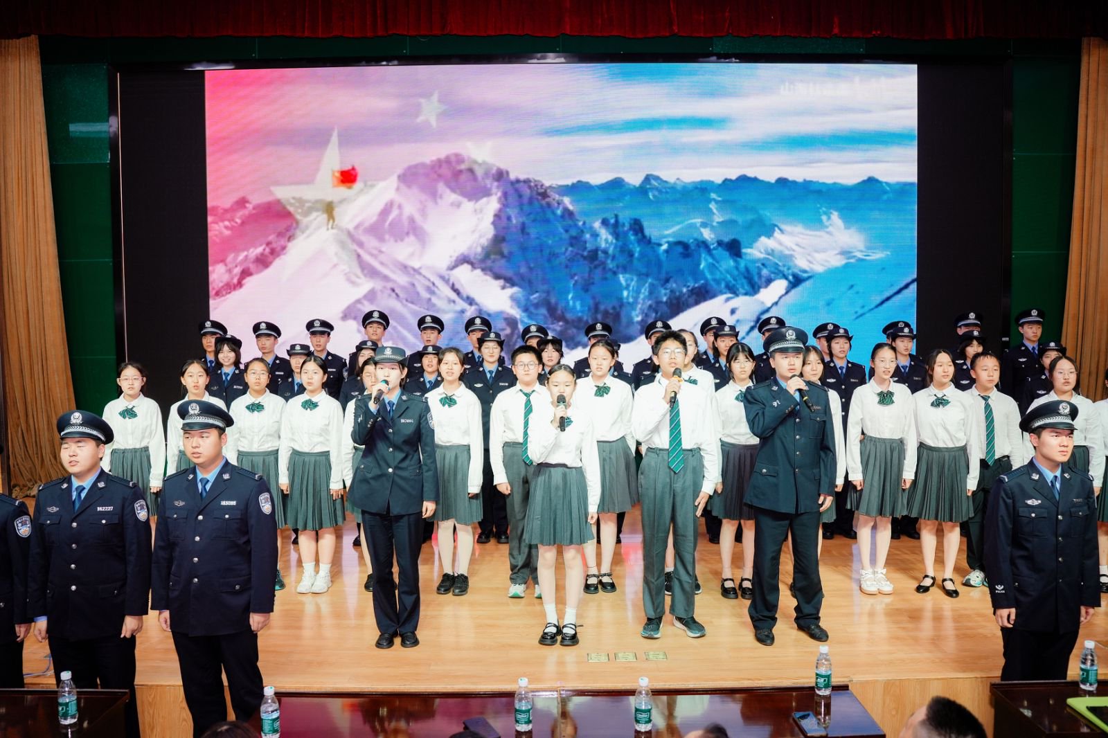 宣讲已近尾声,江苏警官学院合唱团暨蓝丝带宣讲团的学警们与南京师范大学附属中学新城初级中学的同学们登台合唱《我的祖国》,歌声响彻云霄,一曲结束,掌声经久不息......